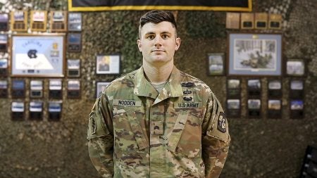 After 10 years as an enlisted soldier in the Army, Zach Nodden enrolled at Carolina as part of the Army Green to Gold program, which provides enlisted, active-duty soldiers with an opportunity to complete their undergraduate degree and earn their commission as an officer.