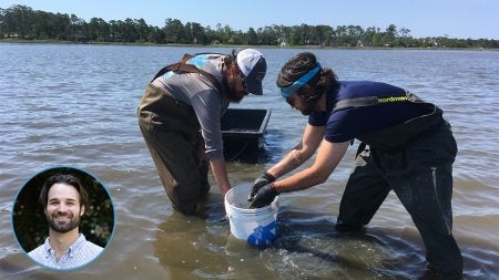 Doctoral student Nick Funnell’s fieldwork focuses on shellfish important to the state’s economy and ecology.