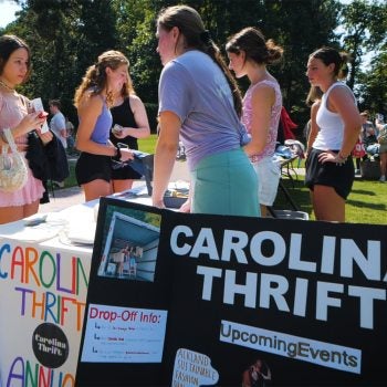 The student-run group resells used clothing in front of the Bell Tower each year during move-in week.
